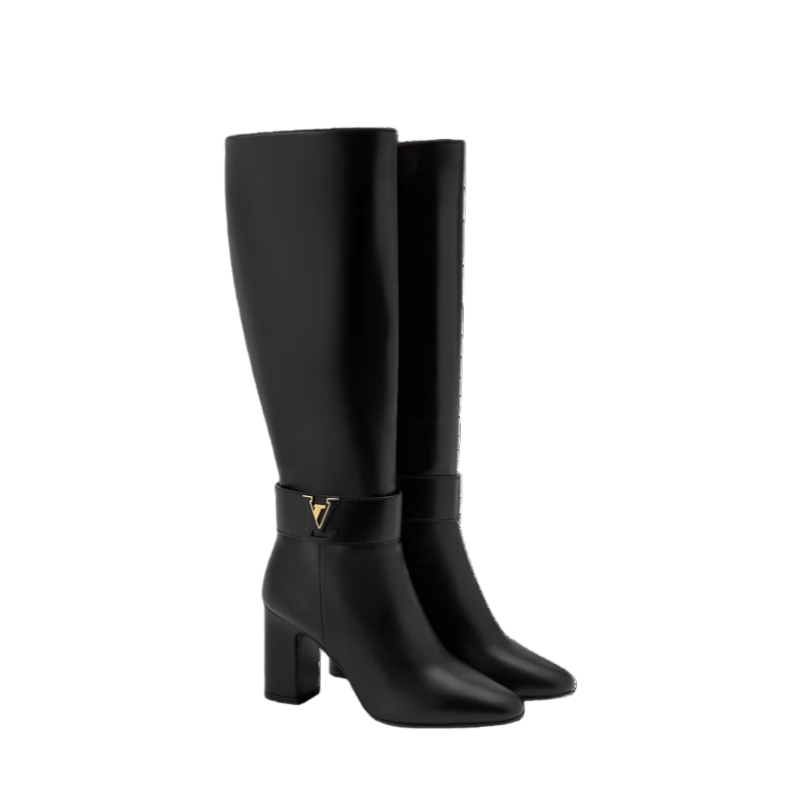 The sleek lines of the Midtown high boot are complemented by smooth calf leather. This elegant style features a distinctive belt detail with an LV Initials accessory in gold-toned metal, which coordinates with the House's emblematic Capucines bag. A discreet side zip ensures easy fitting, while the stable block heel ensures all-day comfort.