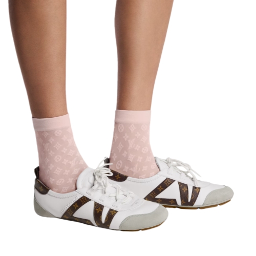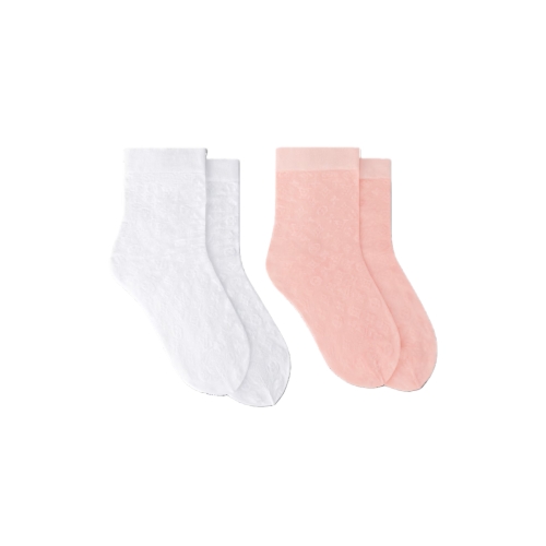 The Monogram All Over socks set offers a sophisticated, eye-catching way to wear the House’s most emblematic motif. Their sheer, ultra-fine fabric is jacquard woven with a tone-on-tone Monogram pattern for a discreet signature. Easy to wear with any outfit, they add a subtle touch of refinement to a casual or more formal look.