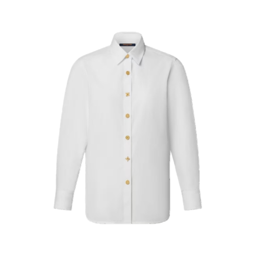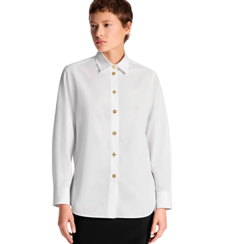 Spirited seasonal signatures reimagine this staple shirt for playful everyday styling. It has a classic tailored look in airy cotton poplin cut in a straight shape with a smart pointed collar, while mismatched golden Monogram Flower buttons add a chic flourish to the front fastening and cuffs.