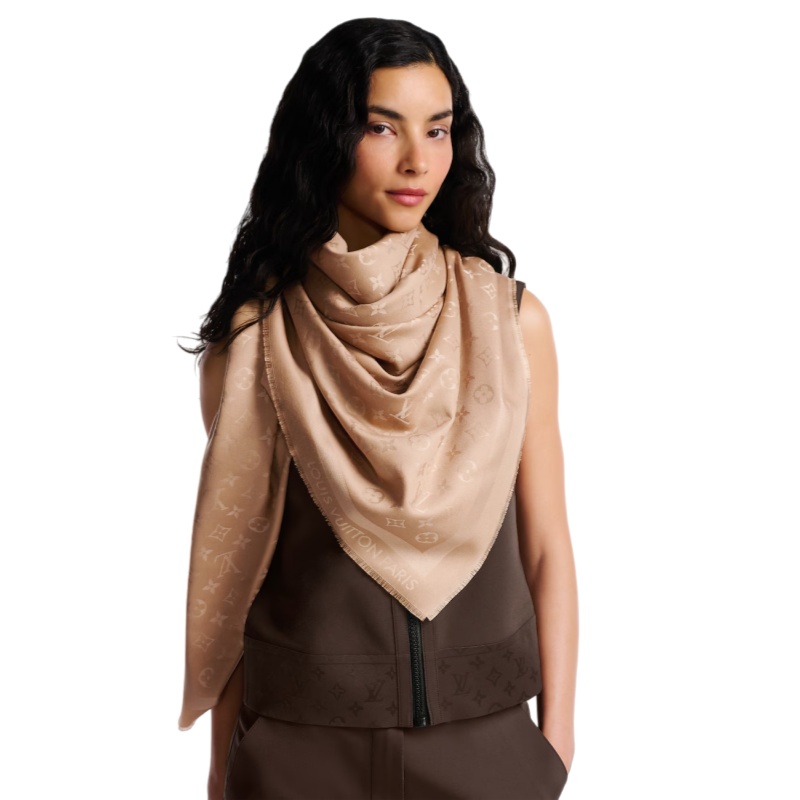 The Monogram Classic shawl is a timeless style celebrating one of the House's most iconic signatures. A tone-on-tone allover Monogram pattern decorates the piece with a subtly shiny effect. The soft wool and silk blend offers a warm and elegant finish, while a fringed hem completes the design.