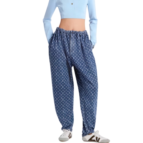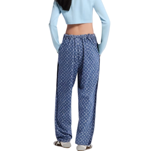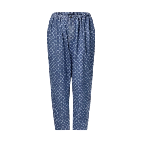 These pants are cut from this season’s go-to lightweight denim featuring the iconic Monogram motif as an allover print for a casual, summery signature. They are crafted in a comfortable straight shape complete with an elasticized waistband that nods to sporty styles, while side seam details add a touch of structure.