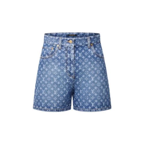 These shorts are a timeless staple in washed denim cut in a casual straight shape that sits high on the waist for a flattering fit. The iconic Monogram motif features as a graphic allover signature, while contrasting yellow topstitching highlights the construction for a classic structured feel.