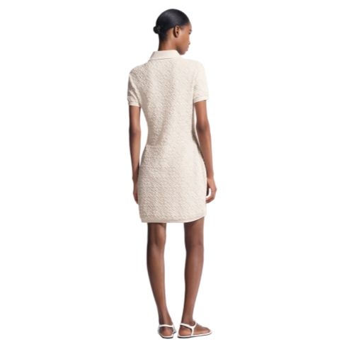 This chic polo dress is crafted from plush cotton-wool blend toweling that is discreetly signed all over with Monogram Flowers in relief and finished with ribbed hems. It is crafted in a casual short-sleeved shape with a sporty flat collar and a golden zipper on the chest, which is trimmed with a Monogram canvas pull.