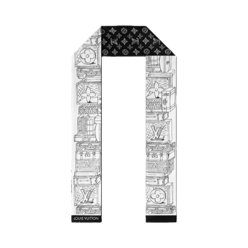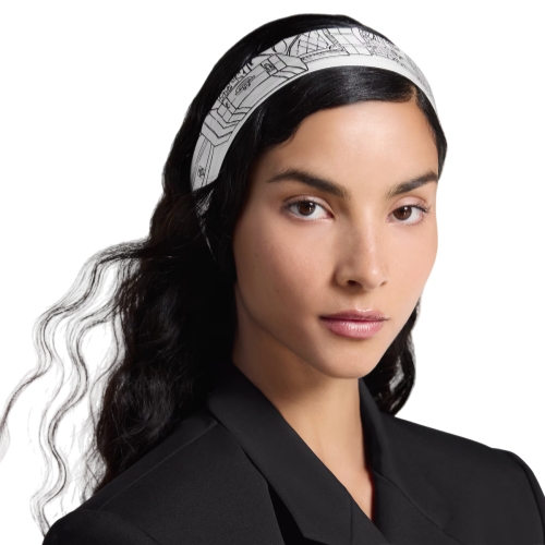 The unique design of the My LV Luggage bandeau is an artistic tribute to the House’s heritage and know-how. Printed on sumptuous silk, an eye-catching array of trunks and bags recalls the bespoke luxury luggage created by Louis Vuitton since its founding in 1854. Monogram elements add an extra signature flourish to this elegant, versatile bandeau.