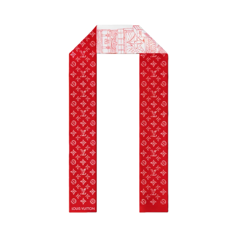 The unique design of the My LV Luggage bandeau is an artistic tribute to the House’s heritage and know-how. Printed on sumptuous silk, an eye-catching array of trunks and bags recalls the bespoke luxury luggage created by Louis Vuitton since its founding in 1854. Monogram elements add an extra signature flourish to this elegant, versatile bandeau.