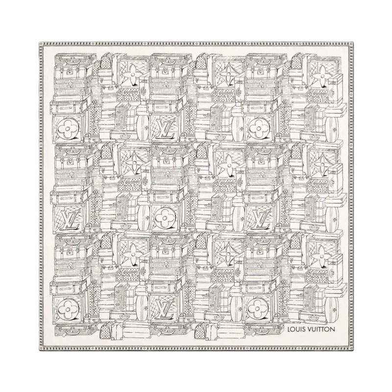 The intricately detailed design of the My LV Luggage square was inspired by the House’s rich heritage and savoir-faire. Printed on pure silk, an array of vintage-style trunks and bags evokes the historic origins of Louis Vuitton as a maker of bespoke luggage. The iconic Monogram Flowers and Initials add an original signature touch to this refined, timeless accessory.