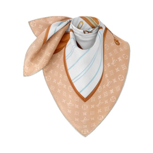 Inspired by a classic handbag, the My Neverfull square is an ode to the House’s luggage-making legacy. Printed on pure silk, its eye-catching design depicts the straps of the Neverfull bag, accented by timeless icons like an LV Circle and a padlock. A Louis Vuitton patch recalling the House’s historic trunks adds an elegant heritage touch.