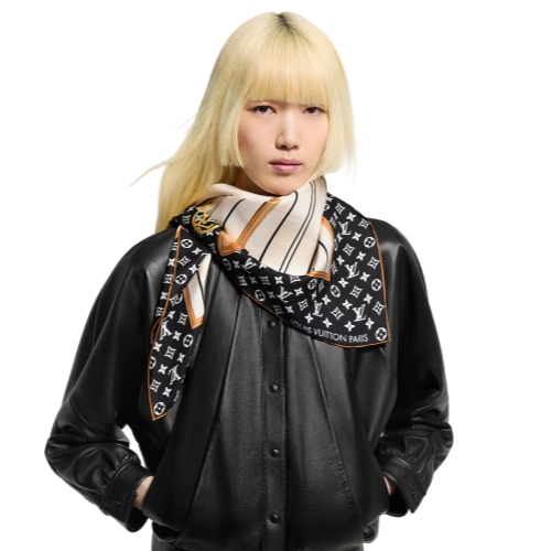 Inspired by a classic handbag, the My Neverfull square is an ode to the House’s luggage-making legacy. Printed on pure silk, its eye-catching design depicts the straps of the Neverfull bag, accented by timeless icons like an LV Circle and a padlock. A Louis Vuitton patch recalling the House’s historic trunks adds an elegant heritage touch.