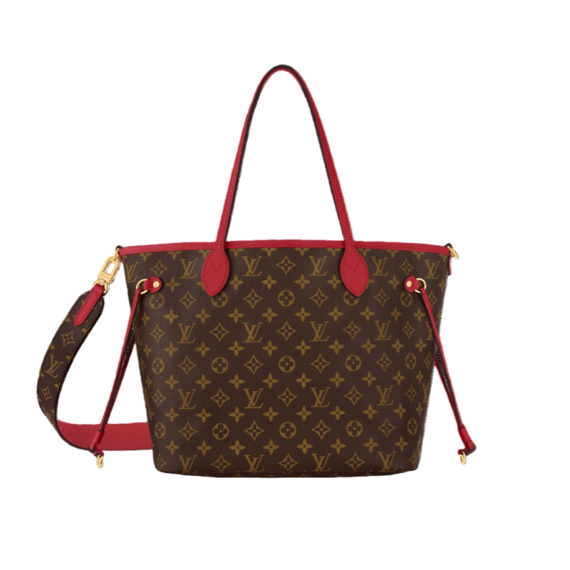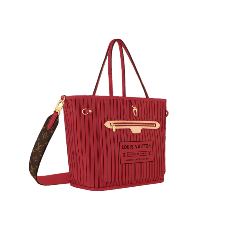 This new edition of the Neverfull Bandoulière Inside Out MM tote with matching color trims strikes the balance of timeless and contemporary. This edition is made from Monogram canvas and has a brightly colored textile and leather trimmings for a bold finish. The versatile design features a new strap and is fitted with side hooks that transform the shape into a hobo style.