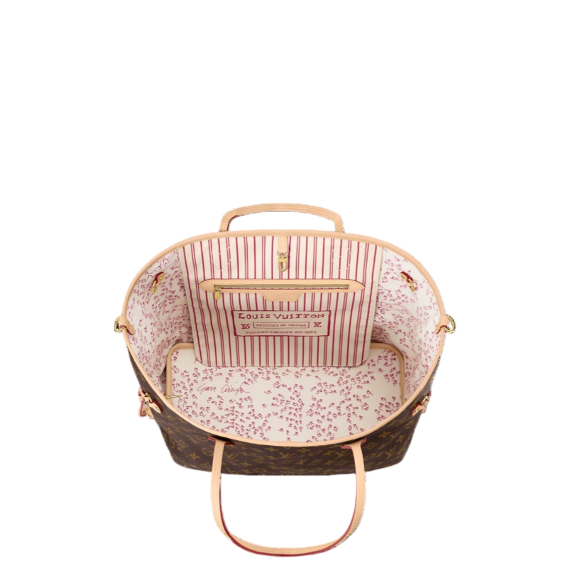 This edition of the Neverfull Inside Out GM unites heritage details with the artistic talent of American Vogue’s former Creative Director at Large, Grace Coddington. Part of the LV Travels With collection, the reversible tote showcases classic Monogram canvas on one side, and an exclusive cat-print on the reverse. The textile strap and iconic Louis Vuitton label are reimagined in Coddington’s handwriting, adding a personal and unique finishing touch.