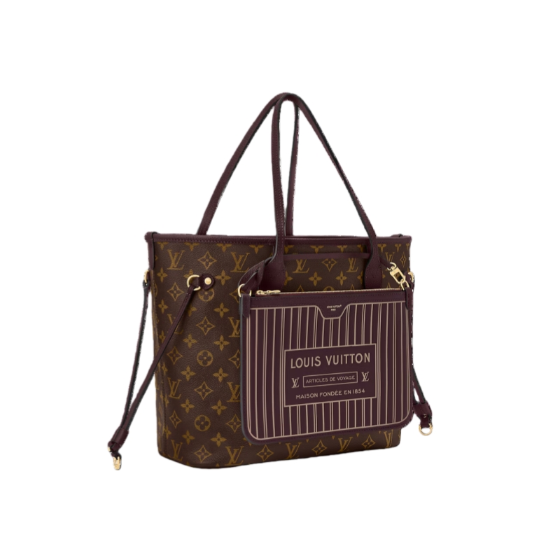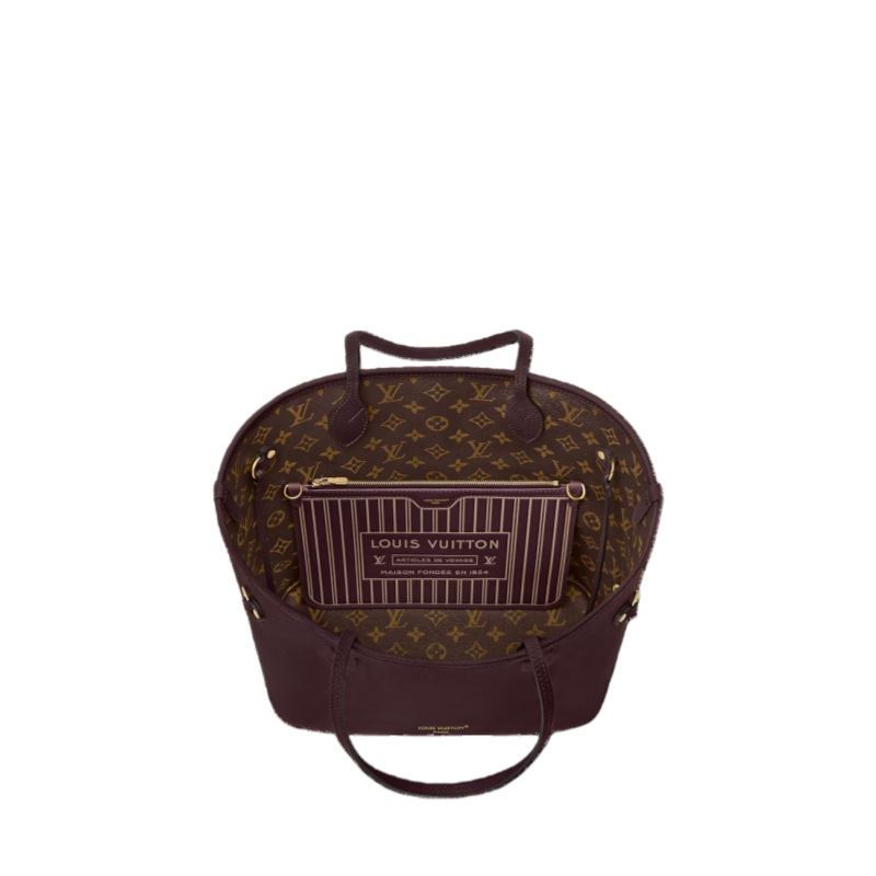 Inspired by the rich tones of the Louis Vuitton lipstick range, this reversible Neverfull Inside Out MM is offered in a sophisticated Monogram Rouge palette. It is crafted from canvas and leather, accented with cowhide trims and elegant gold-toned hardware. The capacious design is sized to fit everyday essentials, including a laptop, and comes with a removable zipped pouch to store smaller items.