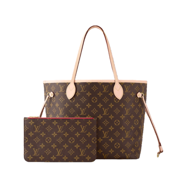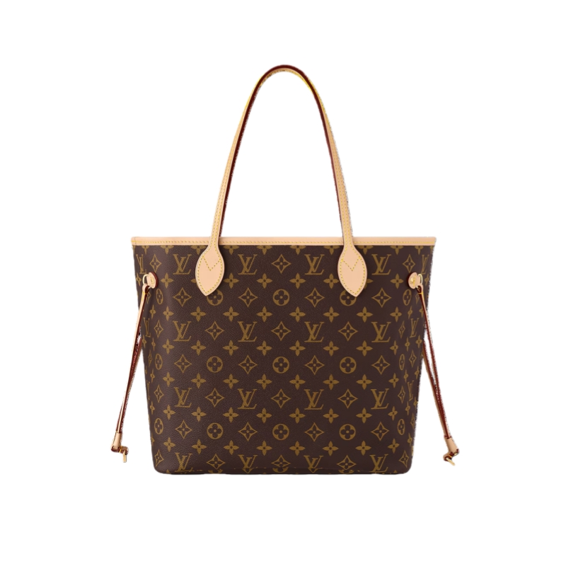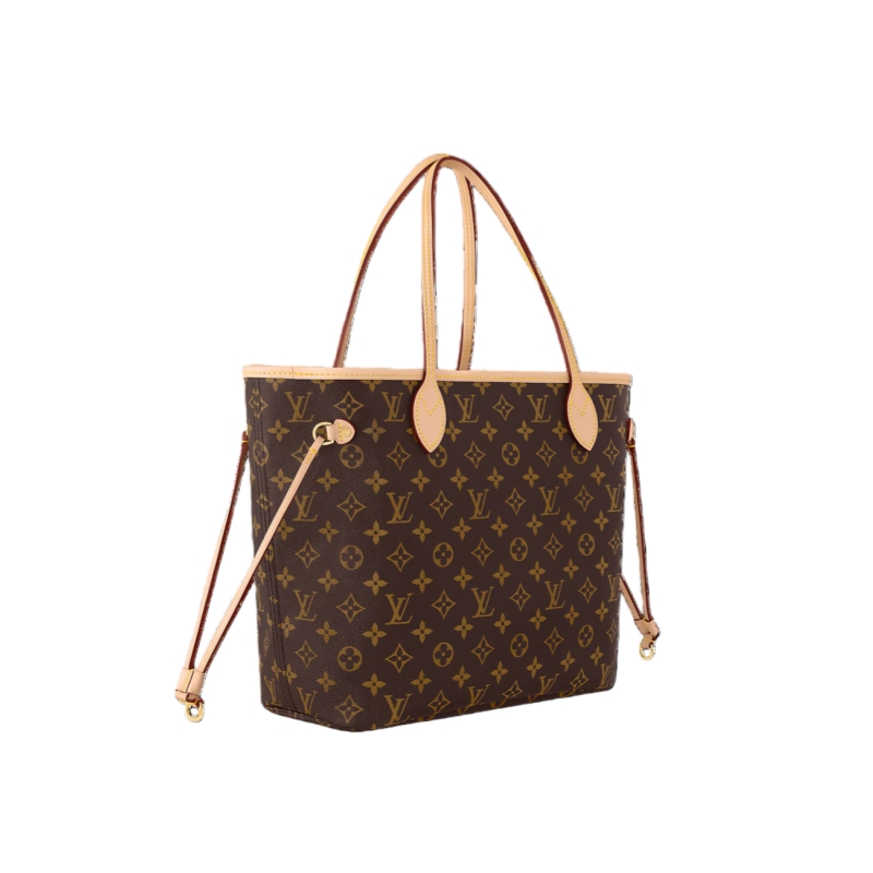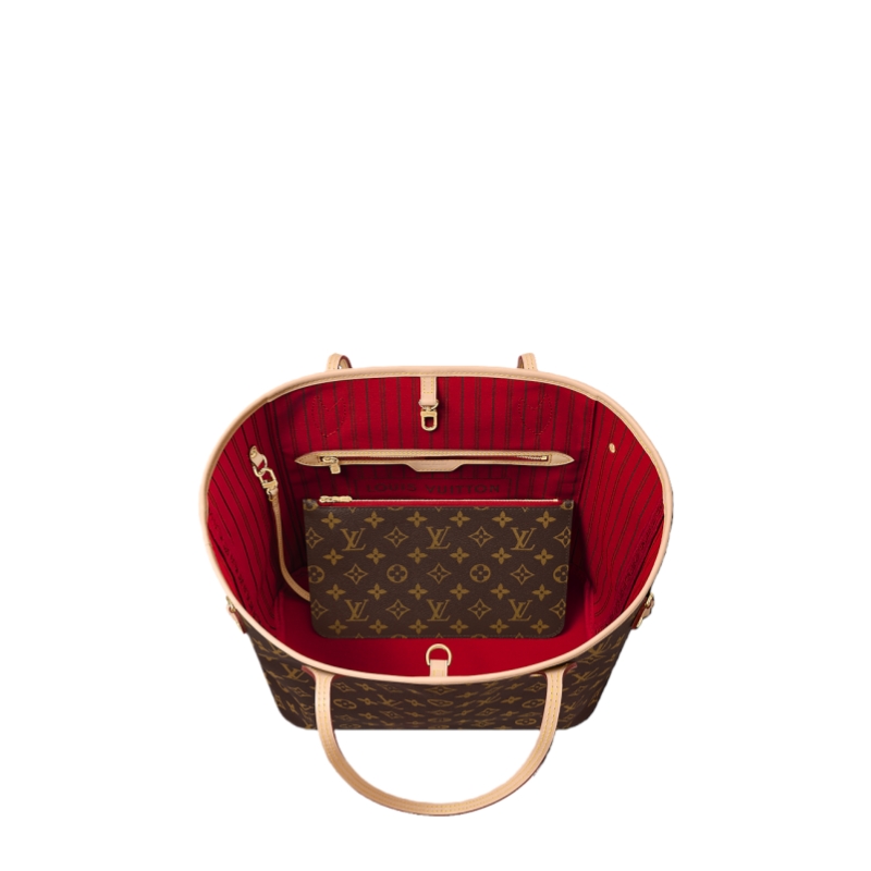 The Neverfull MM tote unites timeless design with heritage details. Made from supple Monogram canvas with natural cowhide trim, it is roomy yet not bulky, with side laces that cinch for a sleek allure or loosen for a casual look. Slim, comfortable handles slip easily over the shoulder or arm. Lined in colorful textile, it features a removable pouch which can be used as a clutch or an extra pocket.