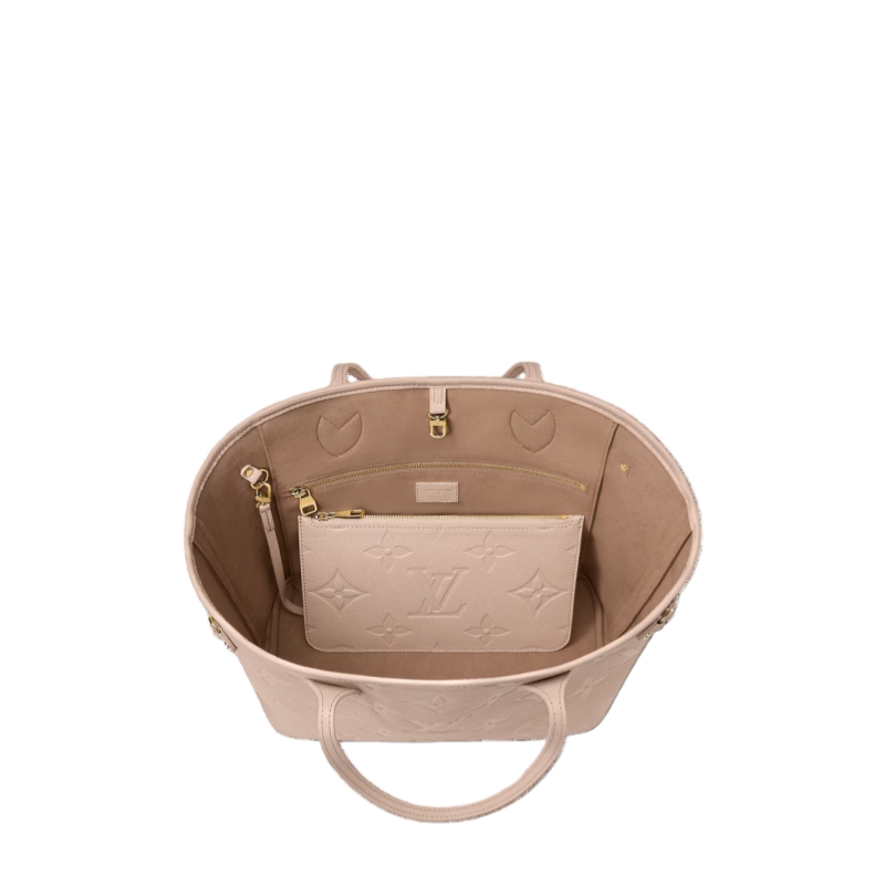 Perfect for city commutes and beyond, the iconic Neverfull MM tote unites timeless design with heritage details. This version is crafted from cowhide leather patterned with the House's Monogram and has adjustable side laces to cinch the profile. It is is capacious enough to store a 13” laptop. Use the removable zipped pouch to keep smaller items organized.