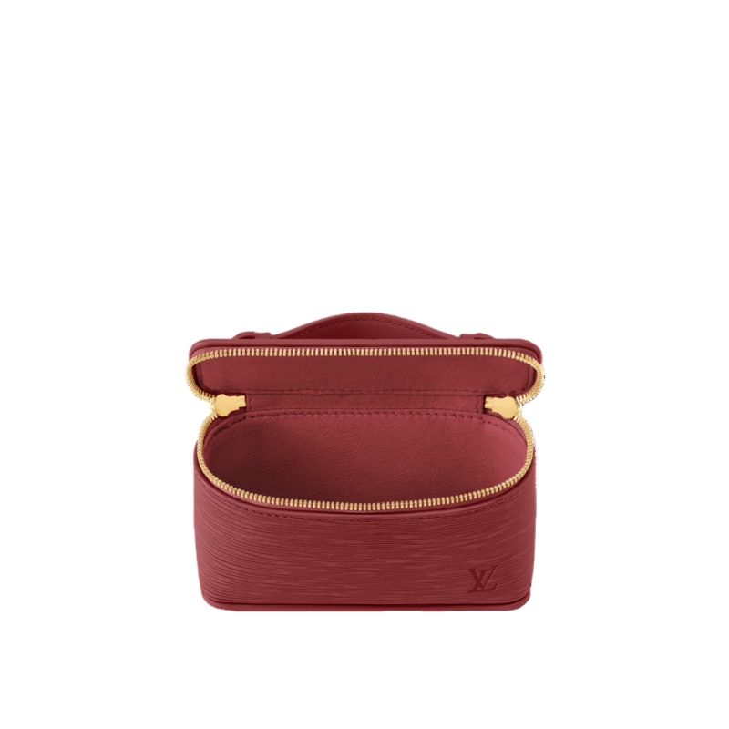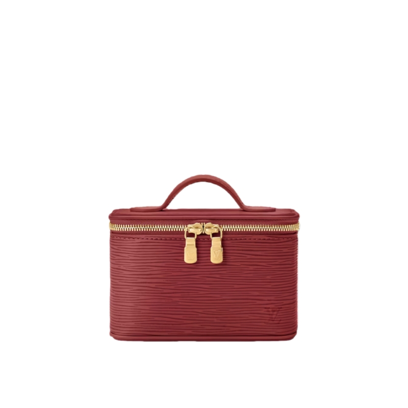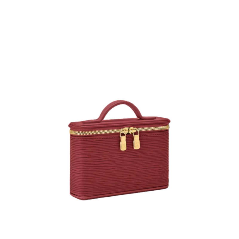 Reimagining the historic Nice Beauty, this compact vanity case is thoughtfully designed to hold five lipsticks. Crafted from an exclusive Monogram Rouge Épi leather exterior, it elegantly coordinates with the iconic burnished red LV Rouge shade — perfectly sized to slip effortlessly into any bag or suitcase.
