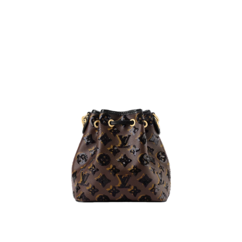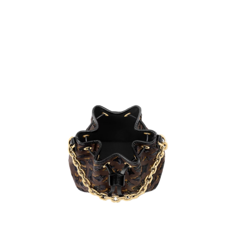 From the LV Ski collection, this shimmering edition of the Noé BB is the perfect evening option for the chalet or the city. It is made from canvas embellished with glittering sequins to create the House’s emblematic Monogram pattern. The iconic style is reimagined from the 1932 original with an additional chunky gold-toned chain. It is sized to fit the essentials, including a favorite lipstick.