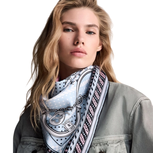 The creative design of the Ocean Bandana square was inspired by the allure of nautical adventure. Printed on sumptuous silk, it updates the classic bandana look with House motifs like straps and chains, mixed with the historic Monogram and Damier patterns. This elegant square is a true statement accessory, imbued with the spirit of travel.