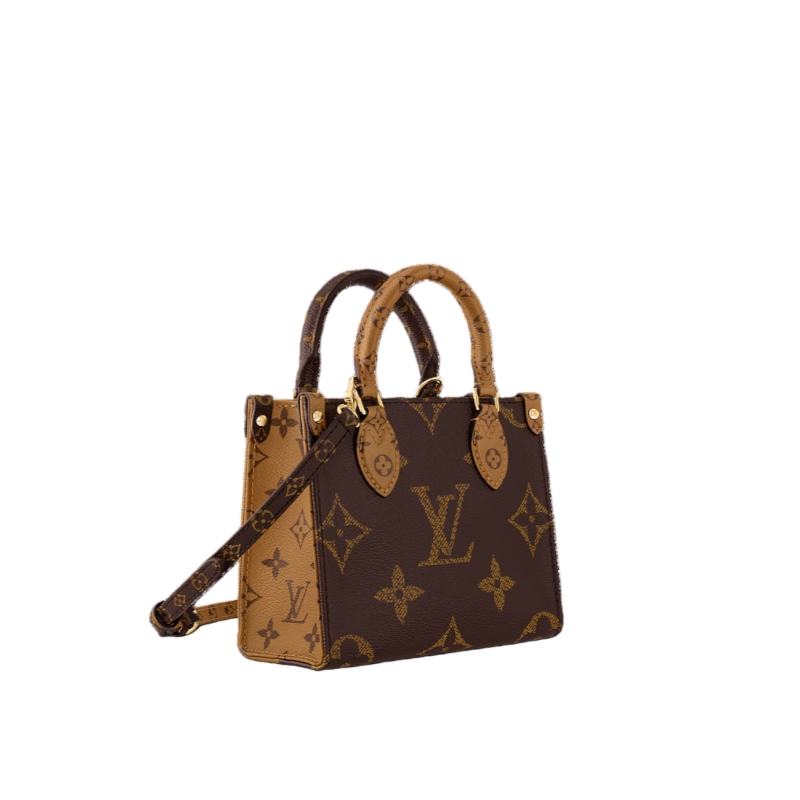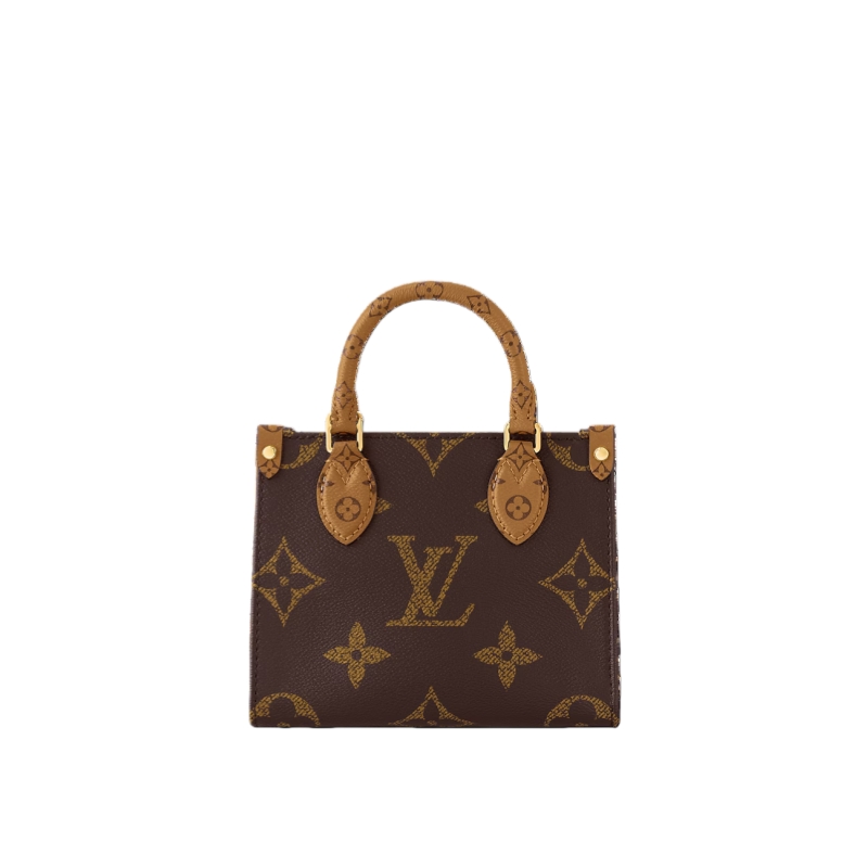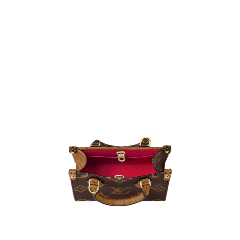 This charmingly petite version of the OnTheGo tote is made from Monogram canvas with Monogram Reverse on the leather handles and handle mounts. This micro-bag includes all the classic details of the full-size model and is large enough to fit a phone. In addition to the two top handles, there’s a removable and adjustable strap.
