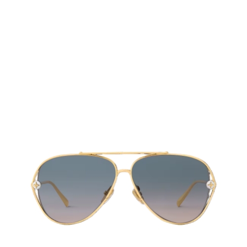 The sophisticated, feminine Pearl Twirl Pilot sunglasses combine the beloved emblems of Louis Vuitton with the eternal beauty of the pearl. Their all-metal frame is enhanced with metal pearls on either side of the lenses, accented with Monogram Flowers for a subtle signature. The LV Initials on the slim gold-colored temples add a precious extra House touch.
