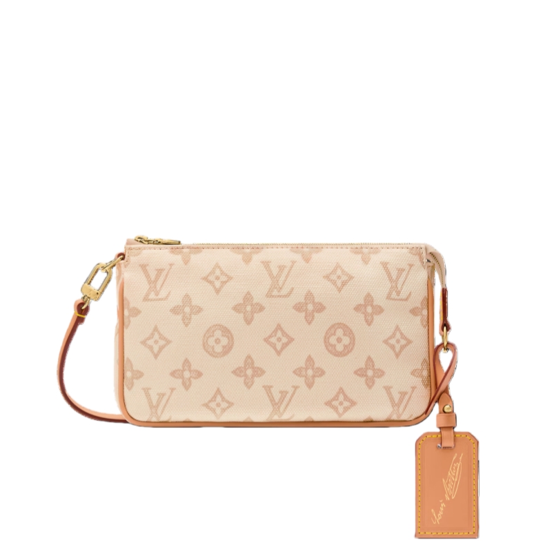Celebrating 130 years of the iconic Louis Vuitton Monogram, this exclusive Pochette Accessories is offered in an elegant colorway that complements daytime and evening looks. It is crafted from Monogram Origine canvas with smooth cowhide trims and is elevated with a removable address tag, paying tribute to the House’s travel heritage.