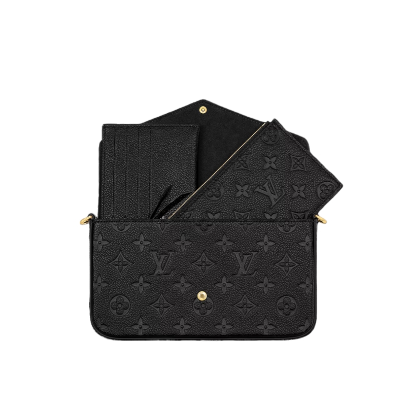 The Pochette Félicie is crafted from Monogram Empreinte leather, embossed with Louis Vuitton's signature Monogram pattern. Designed to adapt to modern lifestyles, this envelope-style pouch contains a spacious compartment with two removable pockets: one zipped, one with card slots. It can also be carried in different ways thanks to a removable chain.