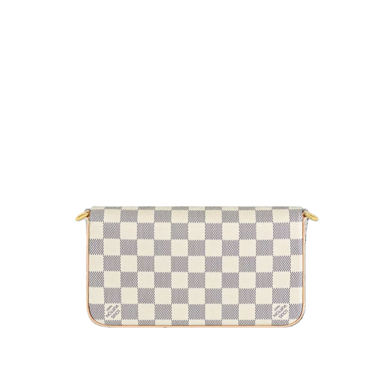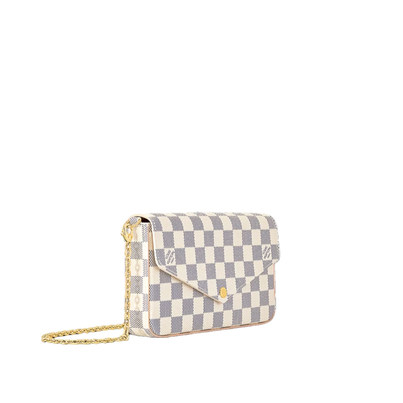 The Pochette Félicie in Damier Azur canvas is a versatile pouch for modern lifestyles. Its envelope-style flap opens to reveal a spacious compartment with two removable pockets: one zipped, another with several card slots. It can be carried on the shoulder or across the body, or - with the chain removed - as a clutch.