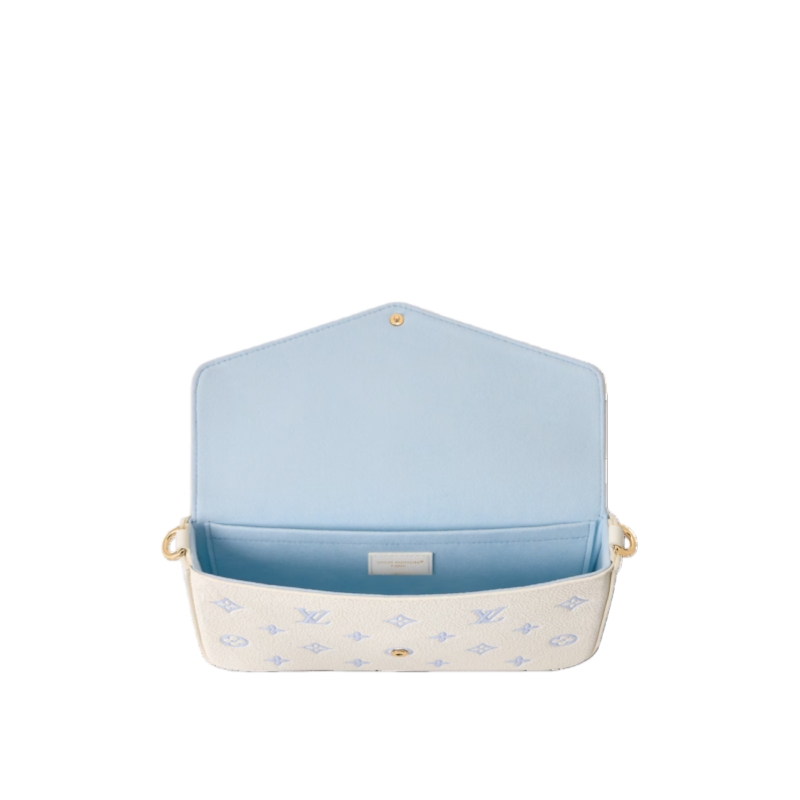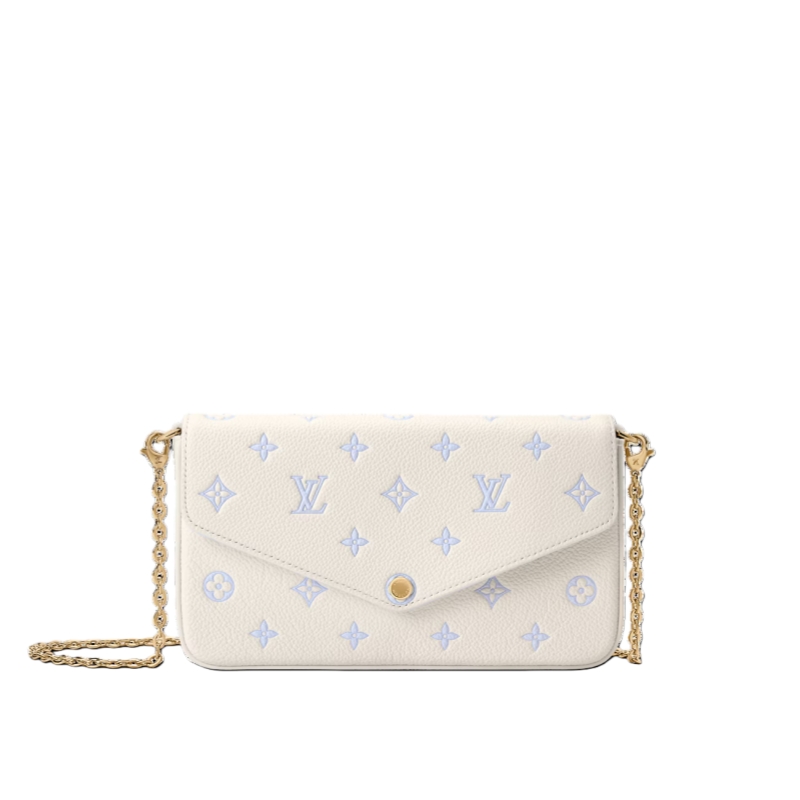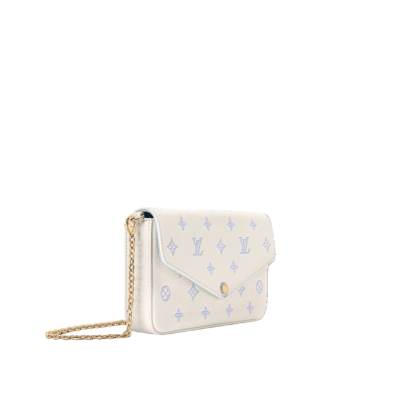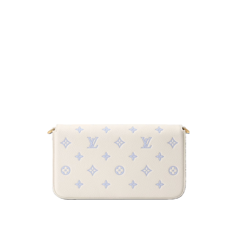 Reimagined in Milky White and Blue, this bi-color edition of the Félicie Pochette belongs to the Sweet Escape collection. It is crafted from signature Monogram Empreinte leather and features two removable pockets, one of which is zipped and the other features eight card slots. The elegant gold-toned chain offers multiple carry options.