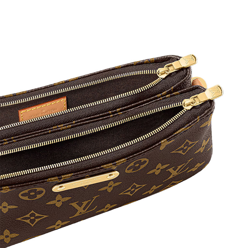 The Pochette Liv in Monogram canvas is designed to fit snugly under the arm. It comes with a detachable gold-tone chain and a removable, adjustable double strap in Louis Vuitton's emblematic natural cowhide leather. A secure, double-zip closure and an engraved, gold-tone plaque finish this stylish piece.