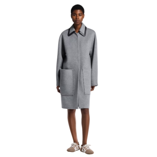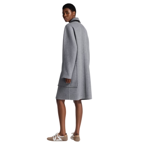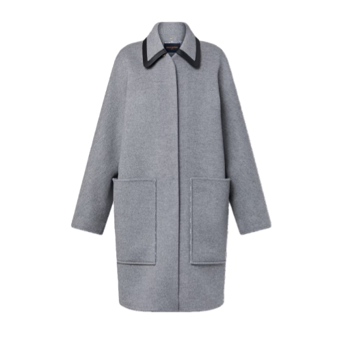 This coat has elevated appeal in a cozy double-face wool-silk blend which is signed on the inside with the iconic Monogram motif. It is cut in a relaxed straight shape, with a covered snap-button fastening and large patch pockets. The removable collar is trimmed with black leather piping for a sleek, modern touch.