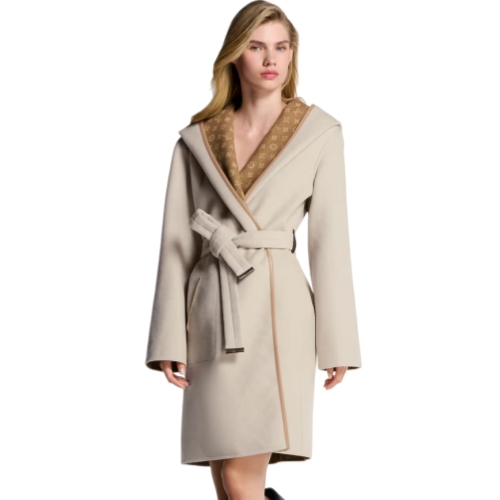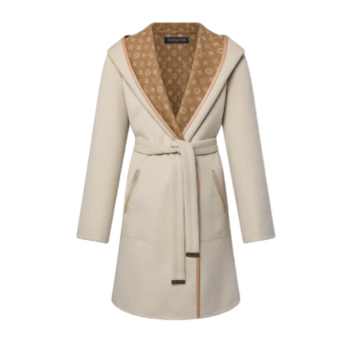 This reversible signature wrap coat is crafted from a plush double-face blend of wool, cashmere and silk for elevated warmth and elegance. Presented in this season’s warm earthy palette, the iconic Monogram motif signs one side. The enveloping silhouette is finished with a generous hood and side pockets, while a coordinating belt defines the waist.