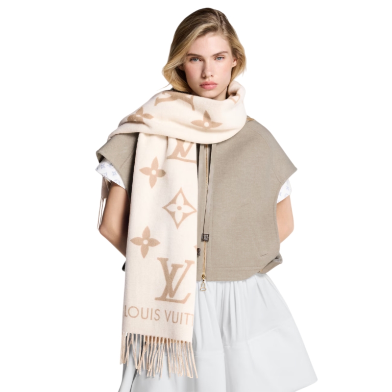 The Reykjavik scarf is a variation of a classic House design with a refined aesthetic. An oversized Monogram pattern lends a bold touch to this timeless piece, as do the inverted colors on the reverse. Pure cashmere gives this scarf a soft feel, while its generous dimensions make it ideal for protection from the cold.