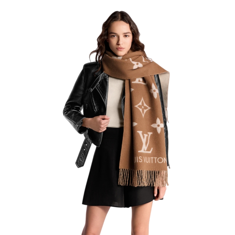 The refined Reykjavik scarf is crafted from premium cashmere, making it the perfect accessory for cold weather. It is adorned with a Monogram pattern in contrasting hues that is woven using an intricate jacquard technique. Long tonal fringe details and a Louis Vuitton signature complete this timeless design.
