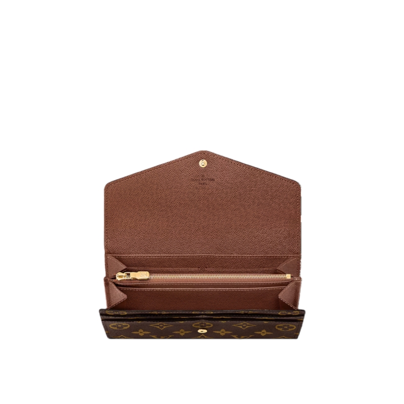 One of Louis Vuitton's classic models, the Sarah wallet combines Monogram canvas with a grained-leather lining. Its elegant envelope-style design conceals a spacious interior with two large compartments, a central zipped coin pocket and multiple card slots. The perfect choice to keep all essentials in one safe place.