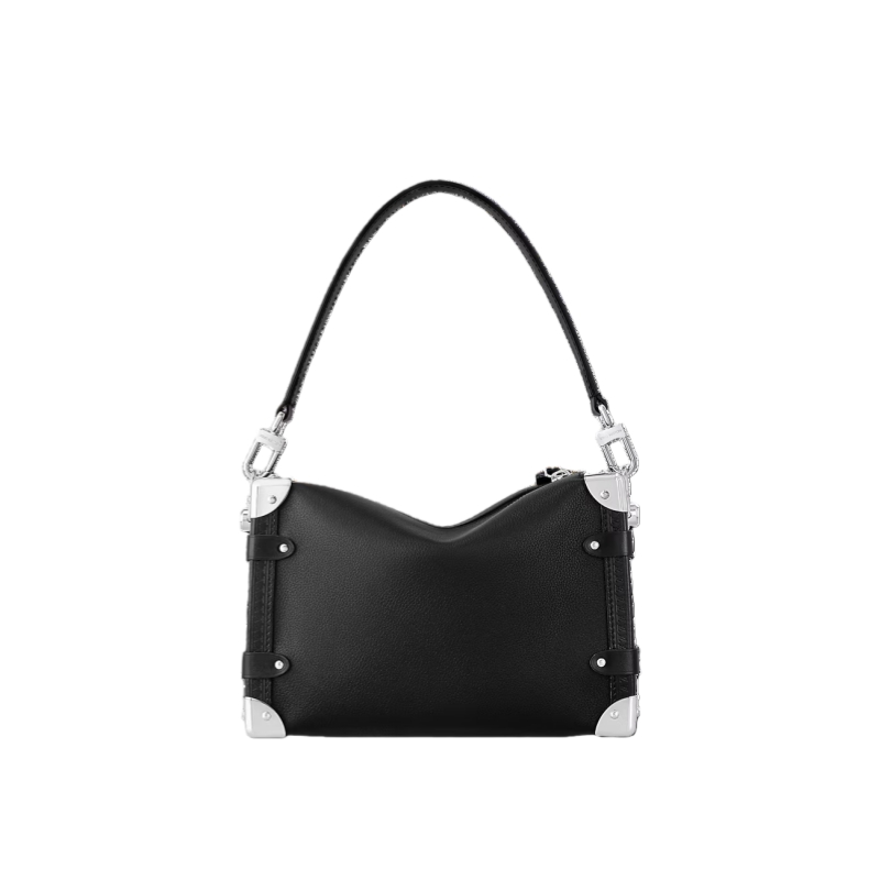 The elegant Side Trunk MM handbag is Creative Director Nicolas Ghesquière’s ode to the House’s historic trunks. Made from grained calf leather with smooth cowhide-leather trim, it features an S-lock and reinforced metallic corners. The removable handle enables hand carry while the detachable and adjustable leather strap adjusts for shoulder and cross-body wear.