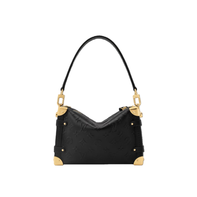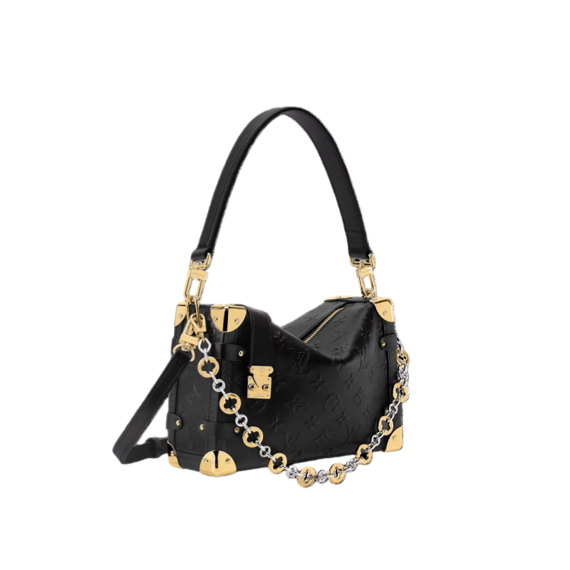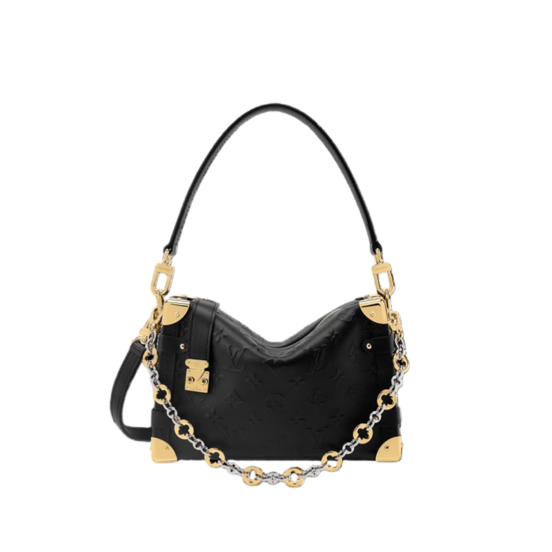 Creative Director Nicolas Ghesquière pays tribute to the House’s iconic luggage-making heritage with this Side Trunk MM. It is crafted from cowhide in a classic shade of Black, elevated with a signature S-lock and metallic corners. A sleek day-to-night style, it can be worn cross-body, over the shoulder or carried by hand.
