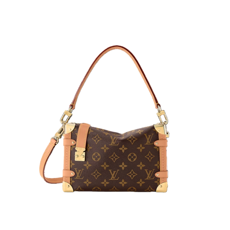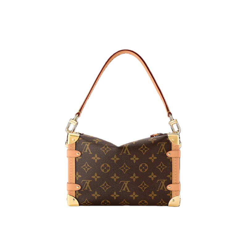 Returning to the House’s trunkmaking beginnings, Nicolas Ghesquière creates the Side Trunk MM handbag in Monogram canvas with leather trim. What strikes the eye is the singularity of the leather zip tab fitted with the iconic S-lock and the reinforced metallic corners. The wide top handle is removable as is the thin leather shoulder strap.