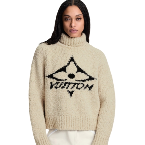 This pullover has cozy appeal in a chunky alpaca wool knit spun in a comfortable relaxed fit for effortless everyday styling. The waist, cuffs and turtleneck collar are finished with ribbing, while the chest is embellished with a scaled-up seasonal Monogram Flower signature for a graphic finish.