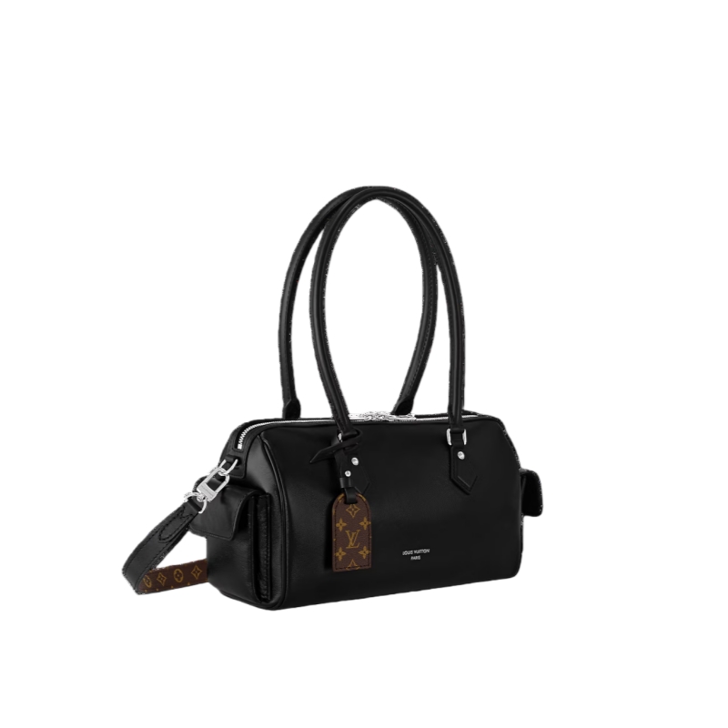 Part of the LV Vibe collection, the Speedy Cargo reinterprets the original 30s Speedy handbag with a neo-rock edge. It is crafted from glossy lambskin and accented with a Monogram address tag, paying tribute to the House’s trunk-making heritage. Capaciously sized for everyday essentials, it offers multiple carry options thanks to the removable leather strap.