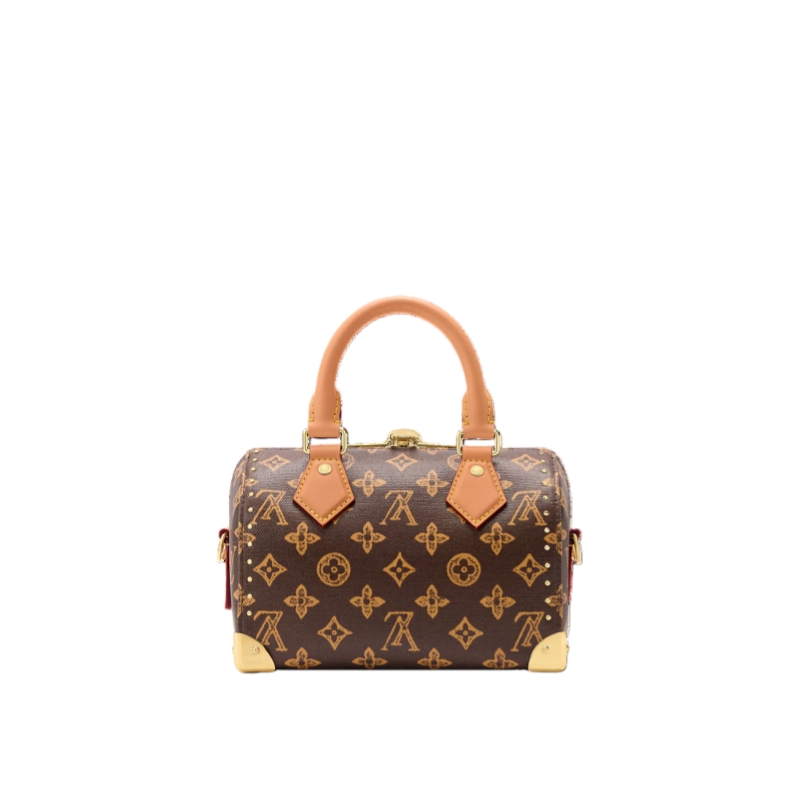 In honor of the 130th anniversary of the Louis Vuitton signature, this Speedy Trunk 20 is reimagined in the House’s unique Monogram Origine canvas. It is trimmed with smooth cowhide on the handles and celebratory address tag, and opens to reveal a striped lining with a flat pocket for small items. The gold-toned chain and padlock lend a sophisticated finish.