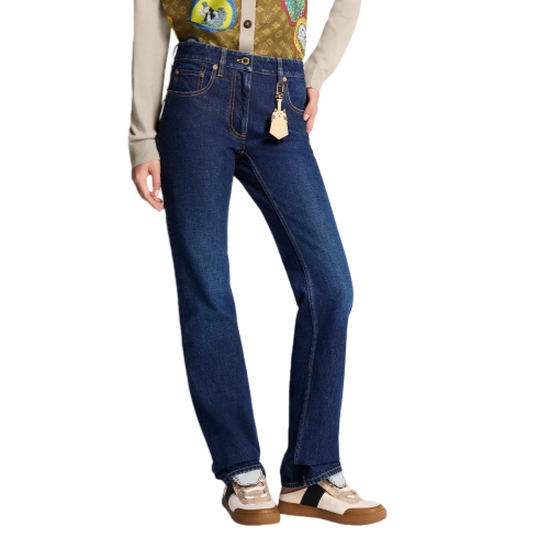 These mid-rise jeans are an enduring staple in a clean-cut straight shape. They are crafted from cotton denim in a casual washed finish detailed with contrasting yellow topstitching for a timeless structured feel. A cat-shaped keybell embellishment completes the look with a whimsical signature from the Travels with Grace Coddington collaboration.