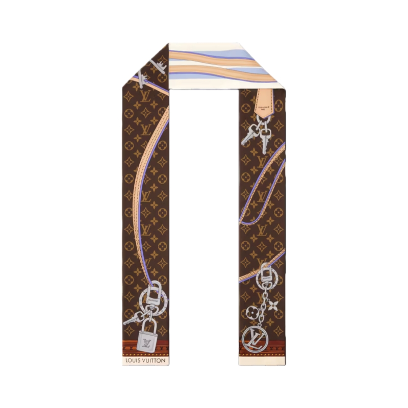 The bold design of the Strap And Trunk bandeau was inspired by the look of historic Monogram luggage from the 19th century. Printed on pure silk, it features a trunk-style leather strap plus a chain adorned with emblematic Louis Vuitton charms. An elegant, eye-catching accessory, and a tribute to the House’s heritage in the art of travel.