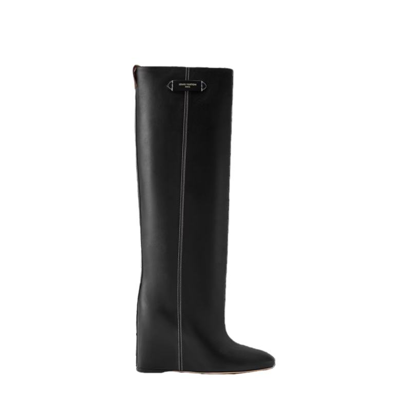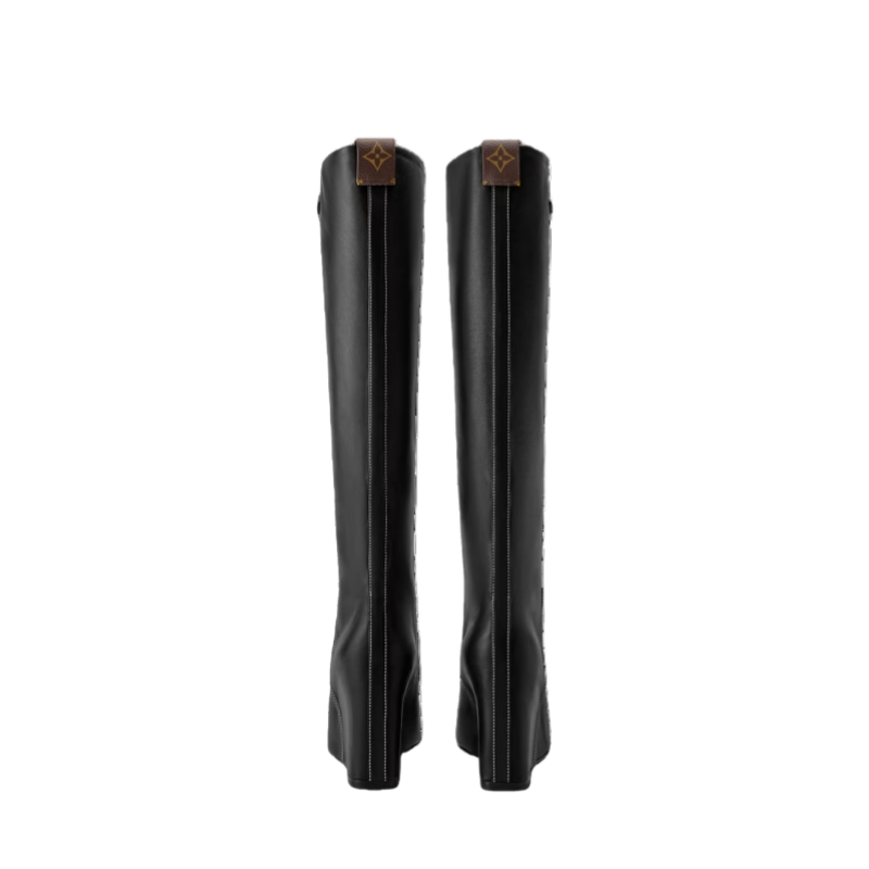 The Summer high boot is a vintage-inspired style which captures the disco vibes of the 1970s. It is crafted entirely from smooth calf leather, which also covers its high wedge heel, creating a sleek look. The tubular shaft ensures easy fitting, and is signed with a Louis Vuitton-embossed leather label and a back loop in Monogram canvas.
