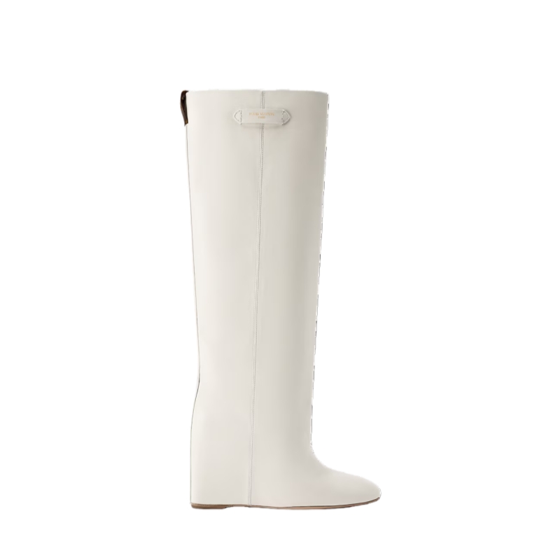 The Summer high boot is a vintage-inspired style which captures the disco vibes of the 1970s. It is crafted entirely from smooth calf leather, which also covers its high wedge heel, creating a sleek look. The tubular shaft ensures easy fitting, and is signed with a Louis Vuitton-embossed leather label and a back loop in Monogram canvas.