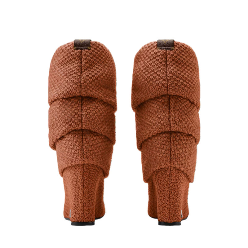 The Summer mid wedge boot was seen on the runway at the Louis Vuitton Fall-Winter 2025 women's show. Crafted from specially developed bouclé knit, this model was inspired by the disco period. Its elegantly slouchy silhouette is accentuated by its high wedge heel, which is signed with an LV Initials stud.