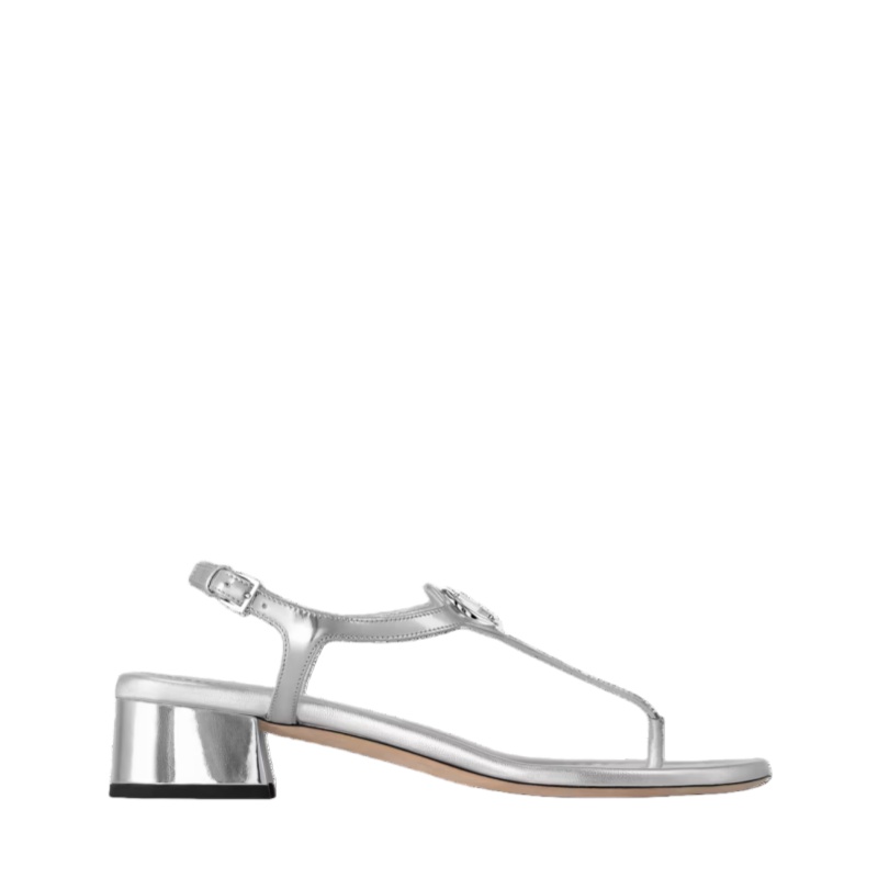 The Sunkiss sandal is a chic yet easy-to-wear model in metallic calf leather. The thong-style upper is signed with a coordinating LV Circle accessory, while the back strap fastens with a small, rectangular buckle. This sandal comes on a low block heel with a distinctive half-flower shape.