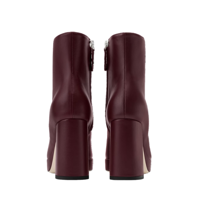 The sleek design of the Swing platform ankle boot is complemented by supple lambskin, which also covers its platform and high block heel. The upper features a row of stitching to define the toe cap, which is embellished with a tone-on-tone LV Twist accessory. The heel has a distinctive half-flower shape, highlighted by a metallic interior.