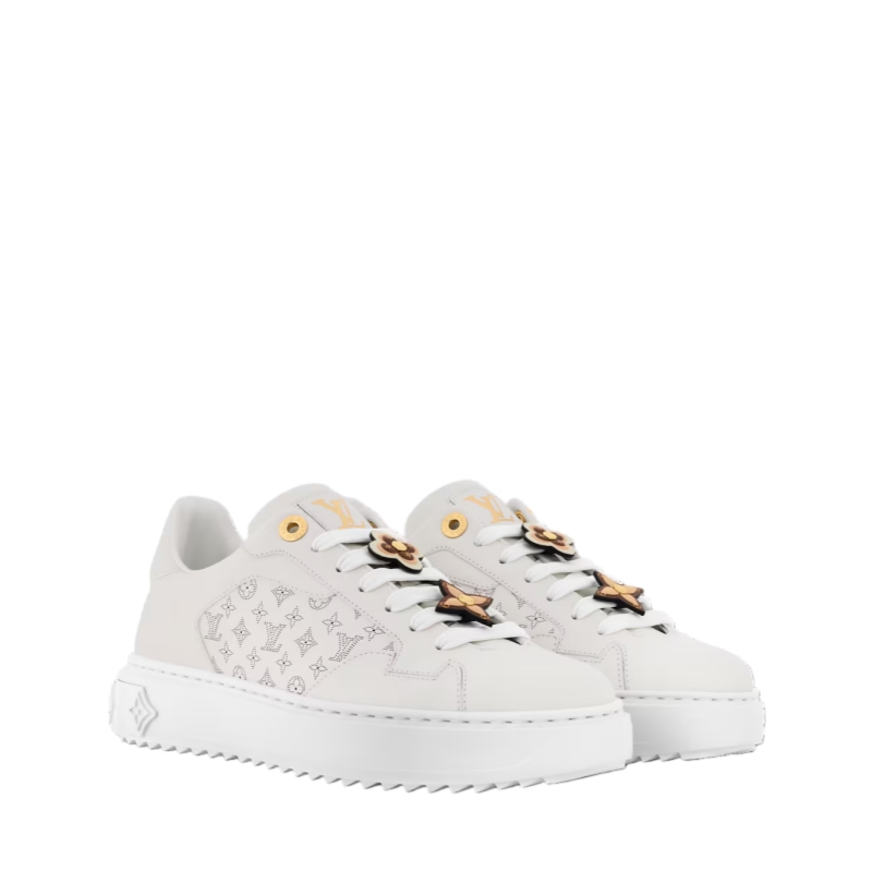 This richly detailed edition of the Time Out sneaker comes in calf leather with trim in perforated Mahina Mongram leather. The laces are embellished with beads in the shape of Monogram Flowers, while the tongue and back are signed with the LV Initials. This model comes on a lightweight EVA outsole decorated with Monogram Flowers.