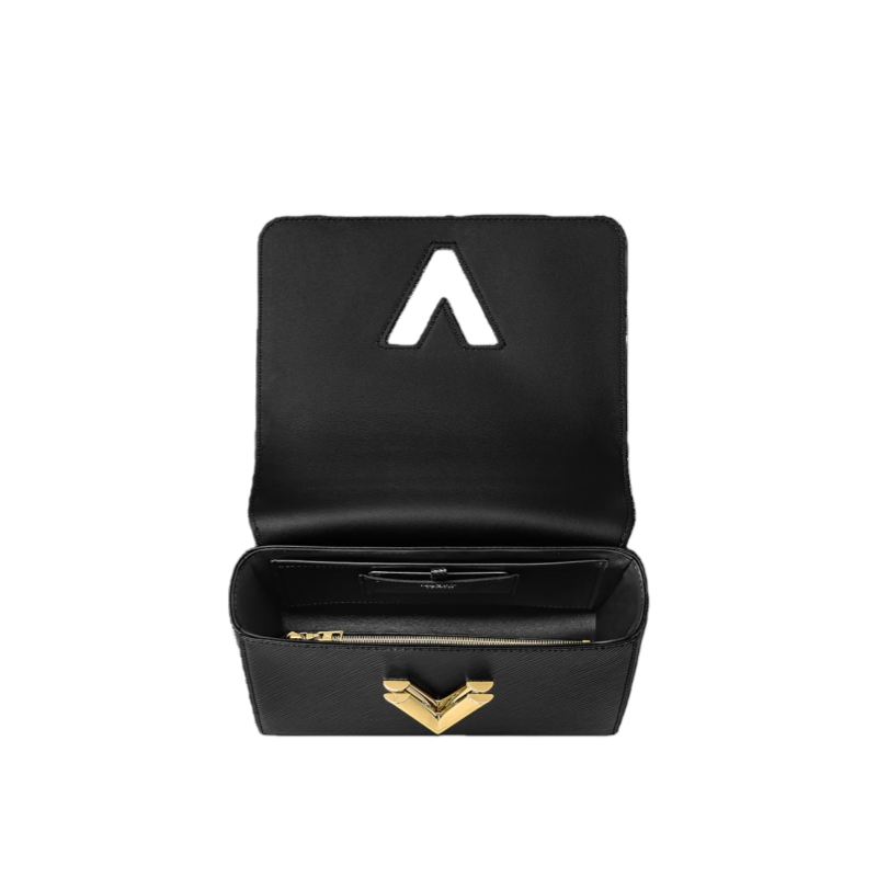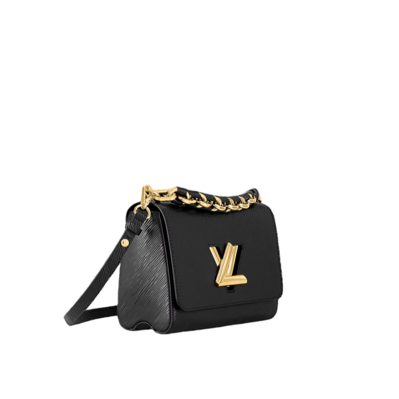 This glamourous Twist MM handbag is made from deep-dyed Epi grained leather and adorned with a detachable chunky gold-color chain, braided with leather. The braiding on the chain reflects Louis Vuitton’s superior leather craftsmanship. The chain is perfect for hand carry while a removable strap allows shoulder and cross-body carry.