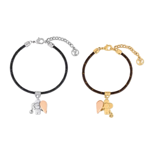 This Vivienne Amour bracelet pays romantic tribute to one of the House's most loved characters. The design offers an elevated take on a friendship bracelet, with two different Monogram cord straps. Each is complete with a polished metal Vivienne charm that can be united in the middle by a gleaming heart.