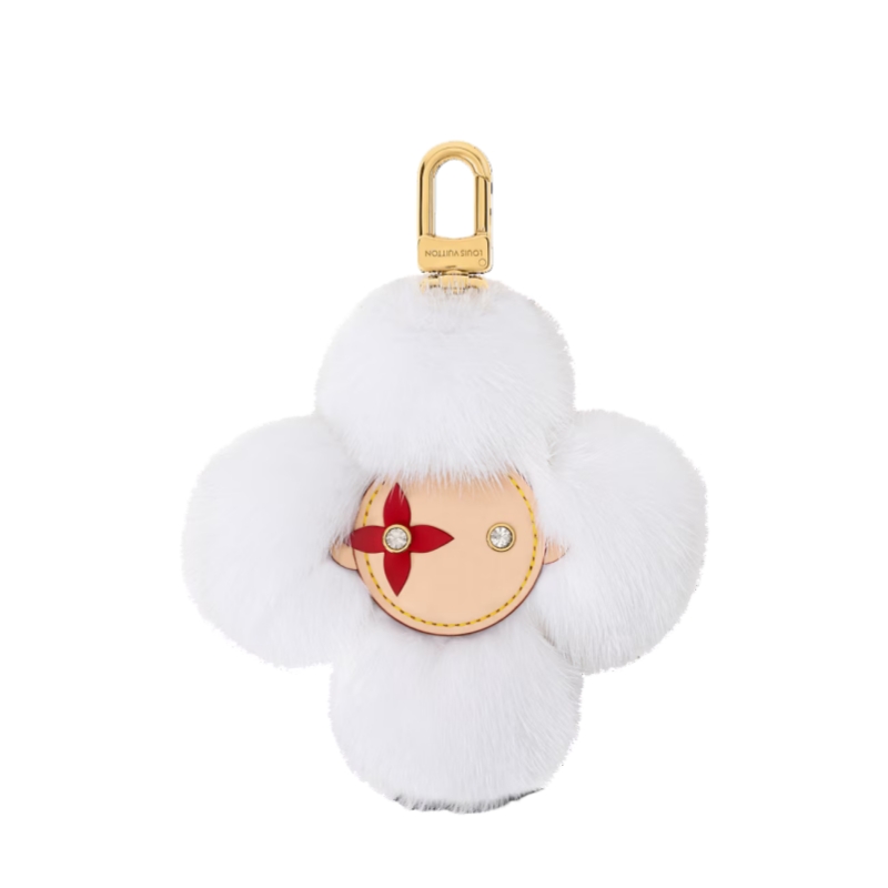 Louis Vuitton’s Monogram-inspired mascot comes bundled up for winter in the Vivienne Fur key holder and bag charm. Vivienne’s adorable face, with her Monogram Flower eye, is styled in leather surrounded by an ethereal puff of colorful mink fur. A standout accessory with a bold and original House look.
