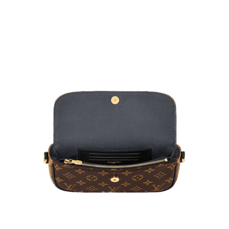 This edition of the Wallet On Chain Ivy showcases the House’s signature Monogram Reverse canvas, offering a directional take for the season. The elegant style is defined by a removable gold-toned chain that matches the iconic LV Initials. The organized interior reveals a flat pocket with three card slots, ideal for securing everyday essentials.